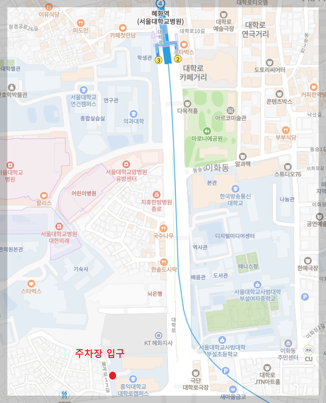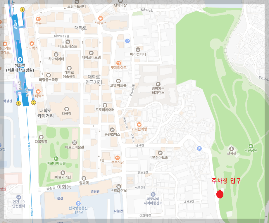 주차장 입구는 위에 지도와 같이 마로니에 공원 옆 골목으로 들어가야 한다