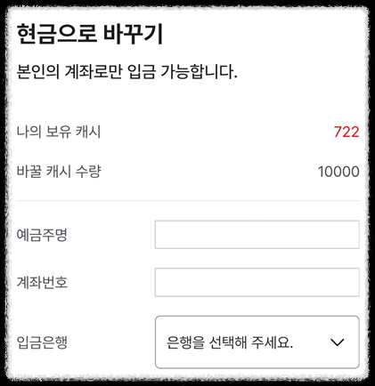 또한 1만 캐시 이상은 현금으로도 바꿔준다고 한다