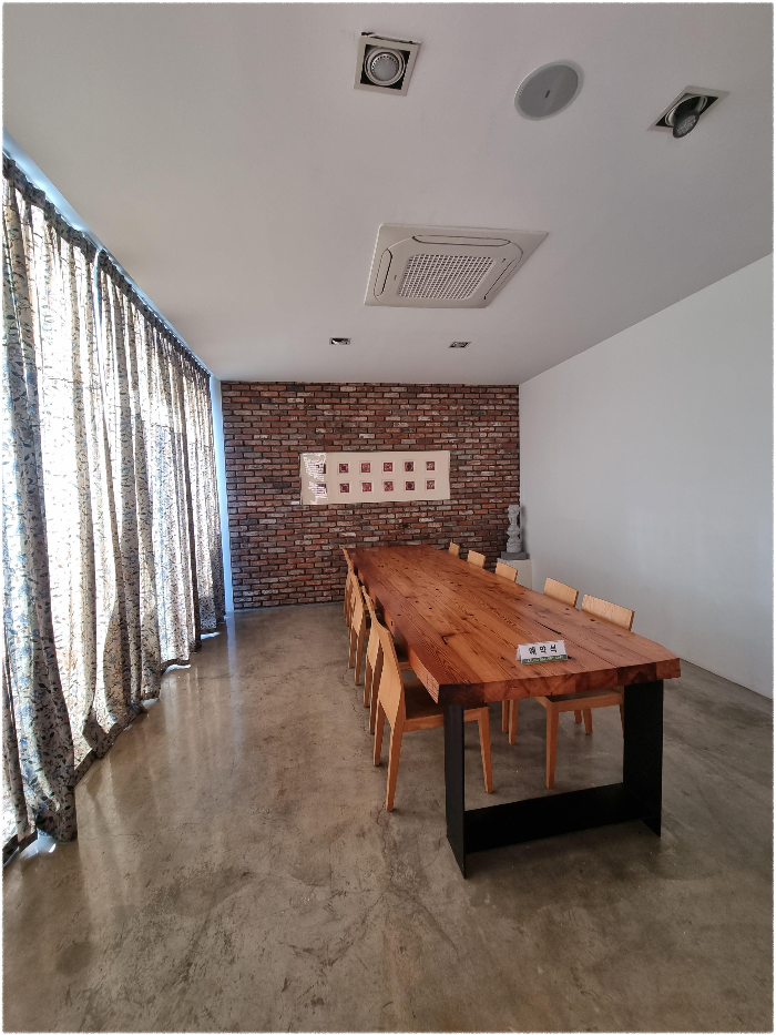 전통 석조유물, 다식판, 떡살, 수예품 등과 현대 예술가들의 그림 & 조각들이 전시되는 갤러리카페