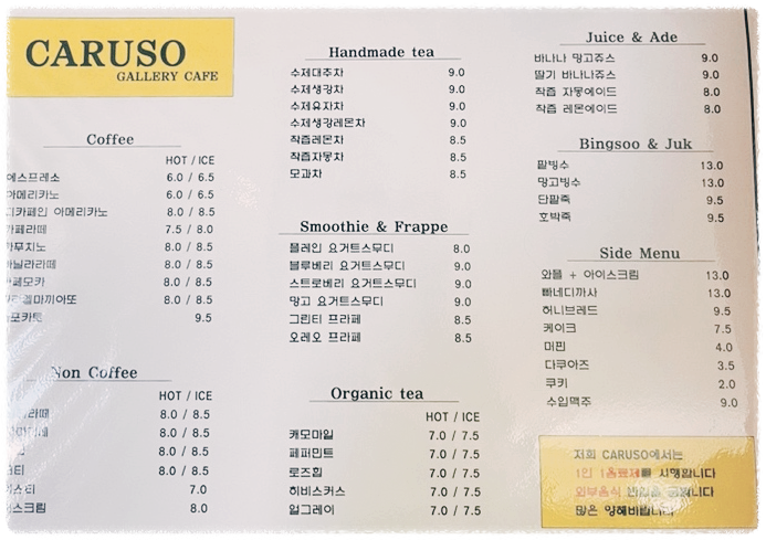 음료 가격은 갤러리를 포함한 가격인지 일반 카페들보다 조금 비싸 보였어요