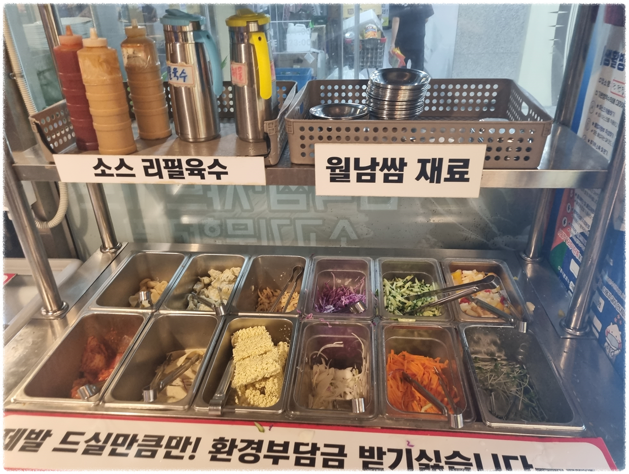 먼저 그릇에 월남쌈을 싸 먹을 야채 재료들과 소스를 받아오고