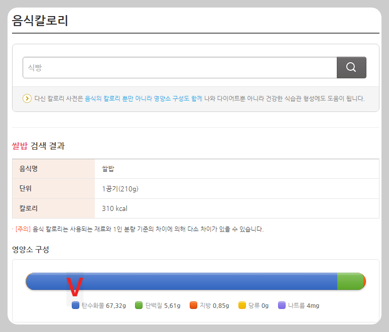 특정 음식의 탄수화물 양이 궁금한 분들은 아래 '칼로리 사전 홈페이지'에서 찾아보세요