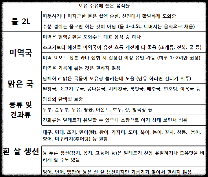 -단, 단유시에는 도움이 되는 음식들입니다